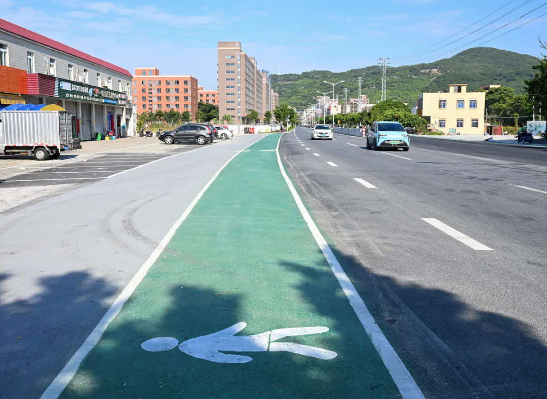 12月3日上午,记者驱车来到228国道东平镇允泊段,沿途看到小车、共享单车在划好线的框里有序停放;曾经坑洼的路面新铺上沥青,道路中央的福建茶树枝叶茂密、绿意盎然。两旁蓝红相间的彩虹步道干净整洁;昔日破旧、凌乱的广告牌统一被换成橘色栅栏式招牌。
